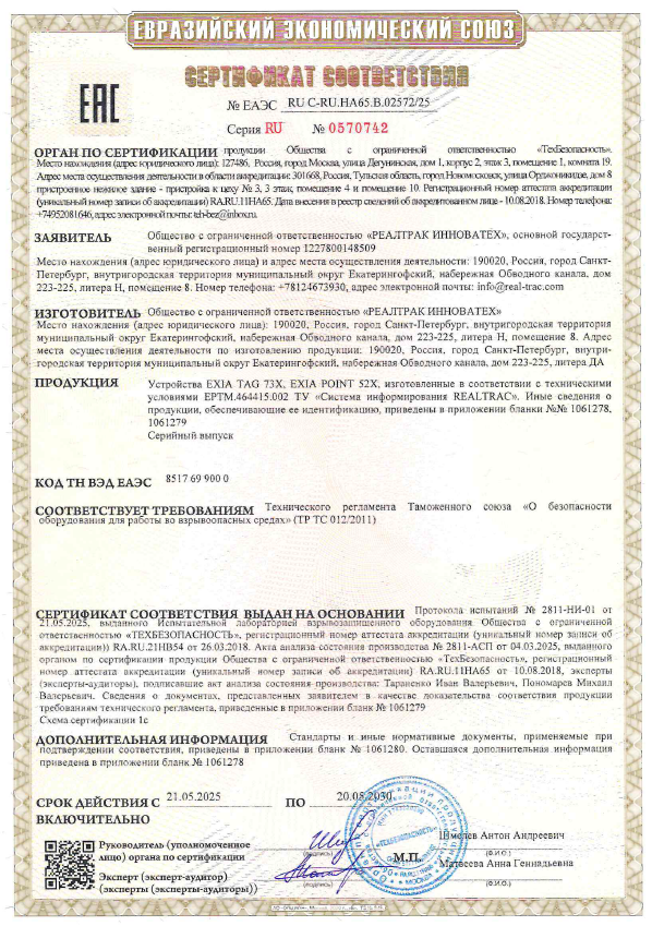 Экспертное заключение центра санитарно-эпидемиологической экспертизы на НОСИМЫЕ УСТРОЙСТВА ПОЗИЦИОНИРОВАНИЯ REALTRAC